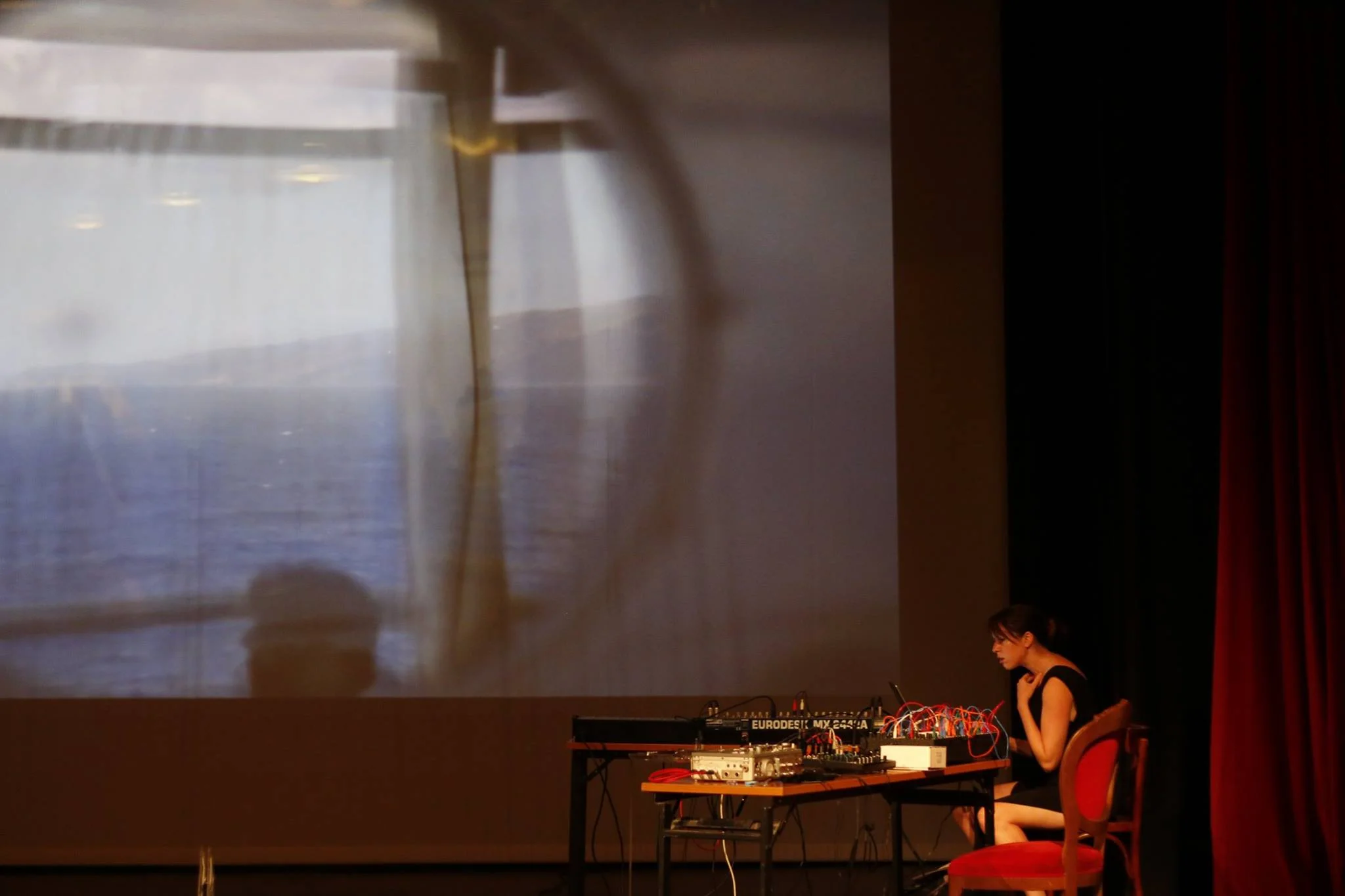 "Somewhere, Anywhere, Nowhere" includes images, filmed projections, and sound recorded on the ferry, in the dock, the Eastern Telegraph Company, and the former quarantine building in the Lazaretto area of Syros. Created during the Syros Sound Meetings/Syros International Film Festival Residency.